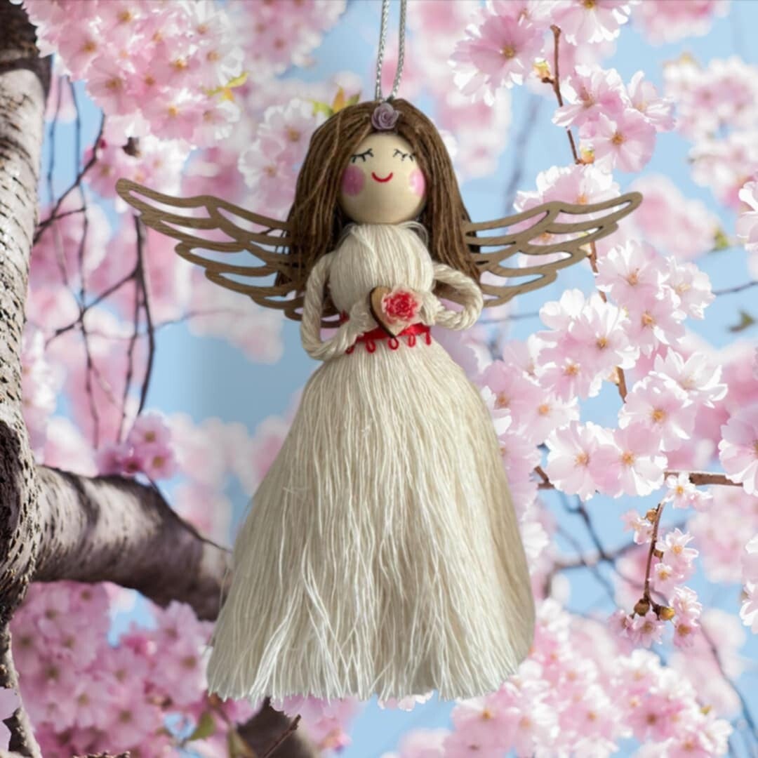 Tissé à la main avec des fils naturels, chaque ange en macramé incarne la tendresse, la protection et la magie des petits gestes. Avec ses ailes délicatement frangées, son halo doré et son cœur en bois, il apporte une touche céleste à votre décoration. À suspendre dans une chambre, près du sapin ou dans un espace de méditation, il veille avec discrétion et bienveillance.