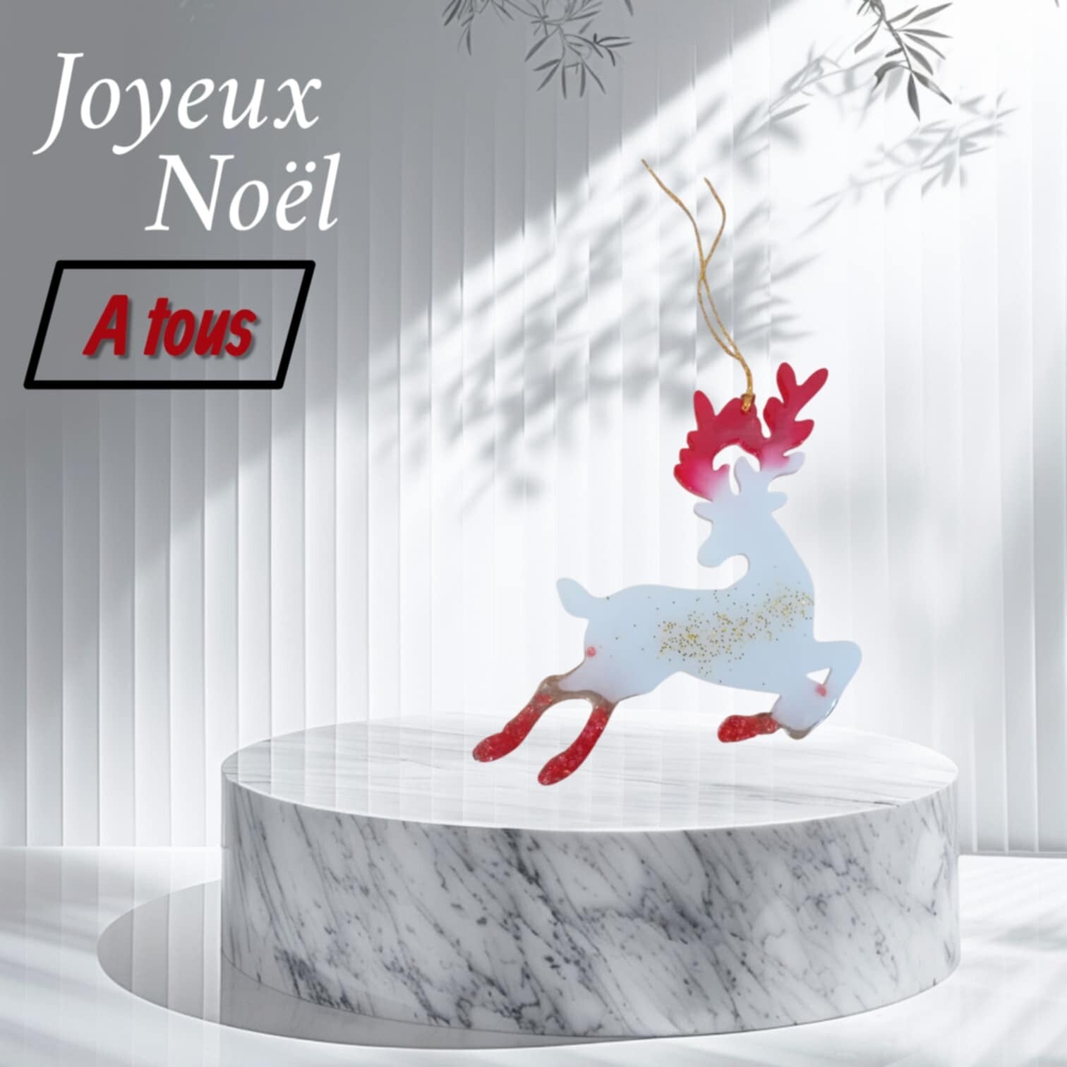 Des silhouettes élégantes à suspendre dans le sapin ou à poser en décoration. Chaque cerf est réalisé à la main en résine colorée, avec des touches de paillettes dorées et des bois stylisés. Ils apportent une note festive, douce et magique à vos ambiances de Noël. À offrir, collectionner ou intégrer dans vos mises en scène hivernales.
