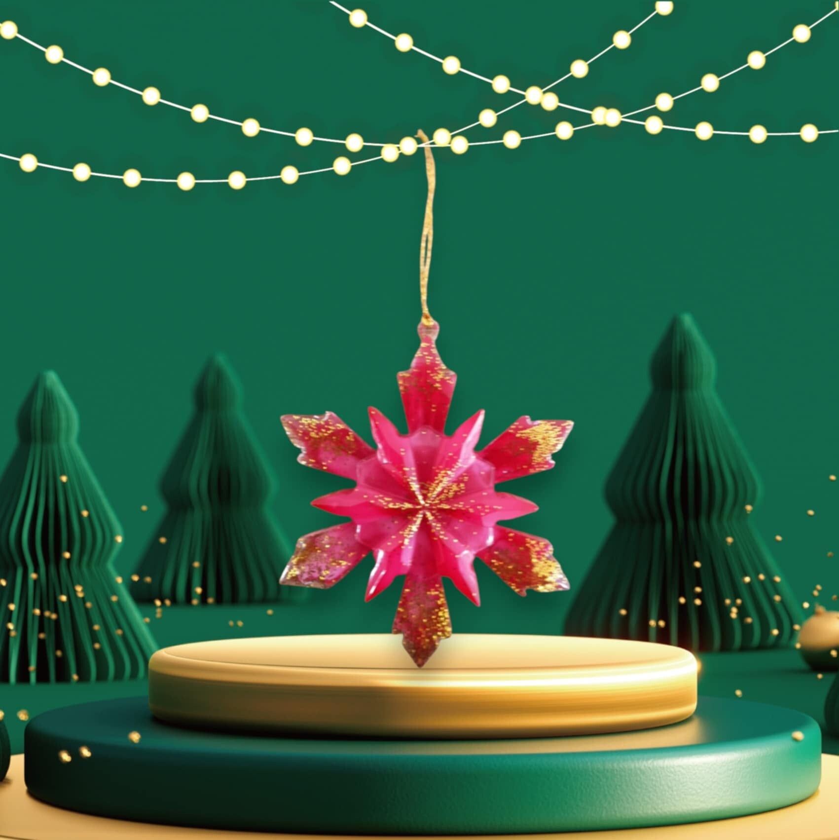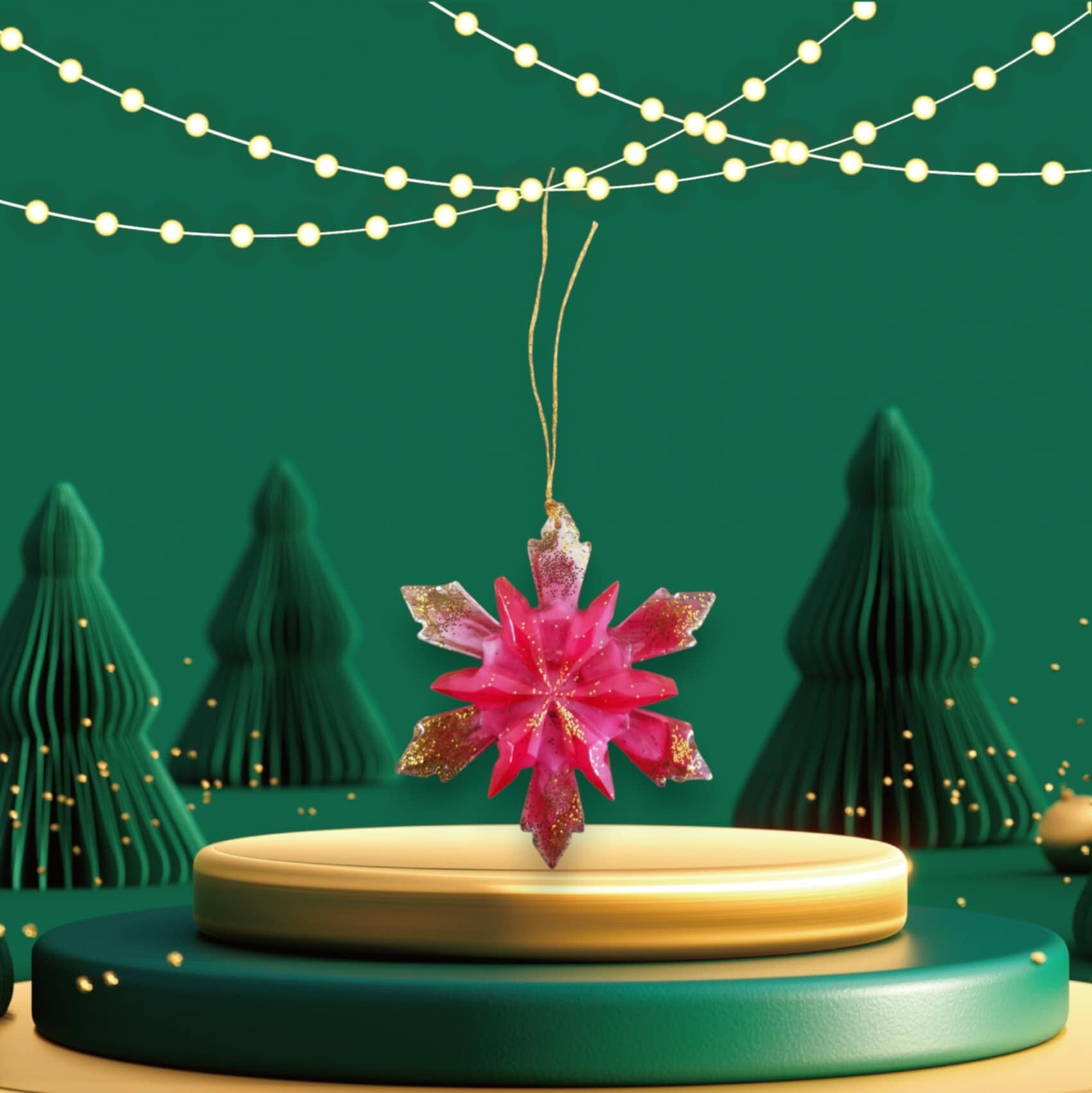 Des étoiles cristallines à suspendre dans le sapin ou à poser sur un socle doré. Chaque étoile est réalisée à la main en résine colorée, avec des touches de paillettes scintillantes et des reliefs stylisés. Elles apportent une lumière douce, festive et magique à vos ambiances de Noël. À offrir, collectionner ou intégrer dans vos mises en scène hivernales.