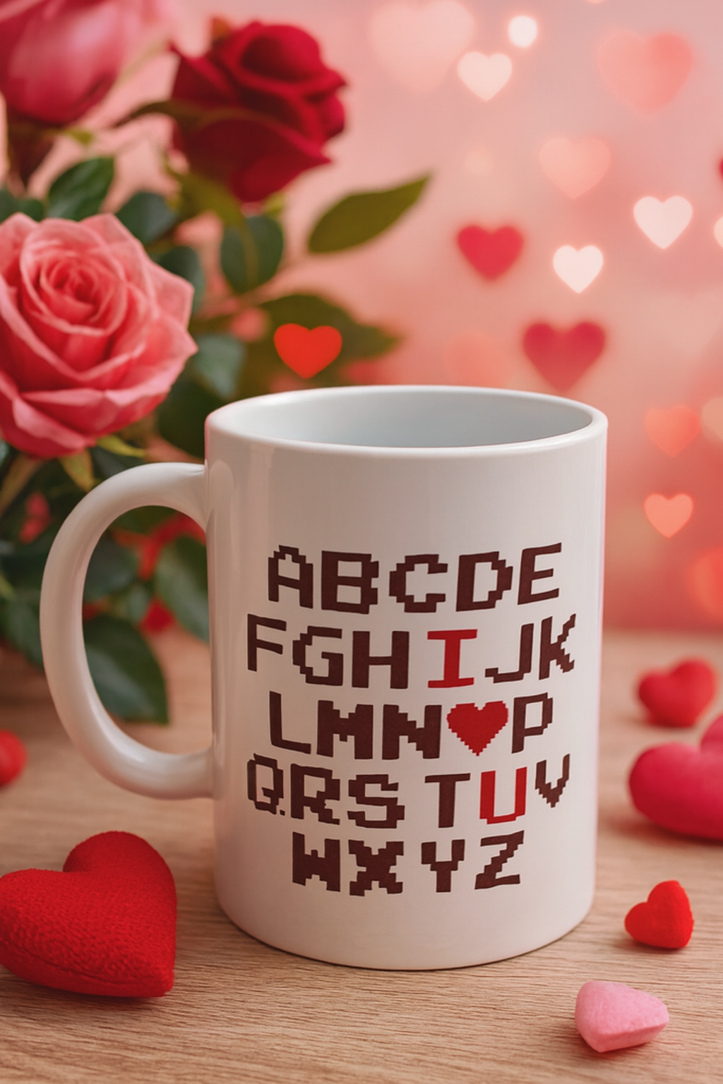 Des tasses en céramique illustrées pour illuminer le quotidien. Ce modèle joue avec les lettres pour glisser un doux message : "I ♥ U" au cœur de l’alphabet. Une idée cadeau tendre et originale, parfaite pour dire "je pense à toi" sans mots. À offrir ou à s’offrir, pour les matins câlins, les pauses douceur ou les petits moments d’amour.